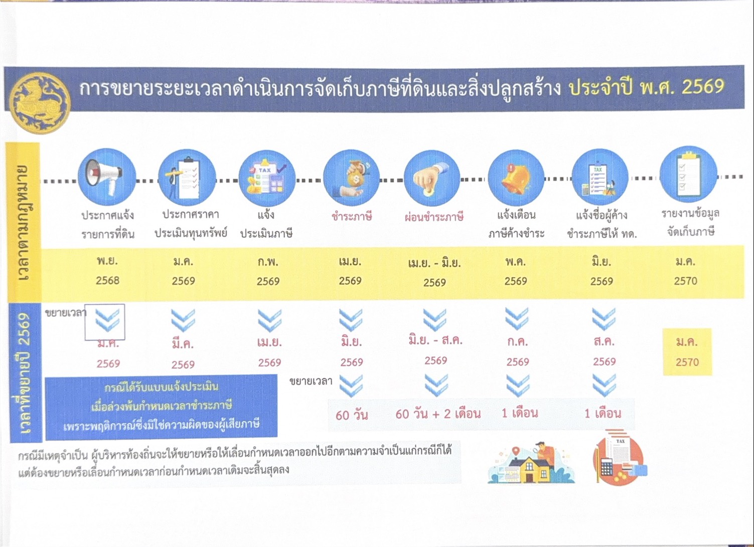 การขยายระยะเวลาดำเนินการจัดเก็บภาษีที่ดินและสิ่งปลูกสร้าง ประจำปี 2569 |
