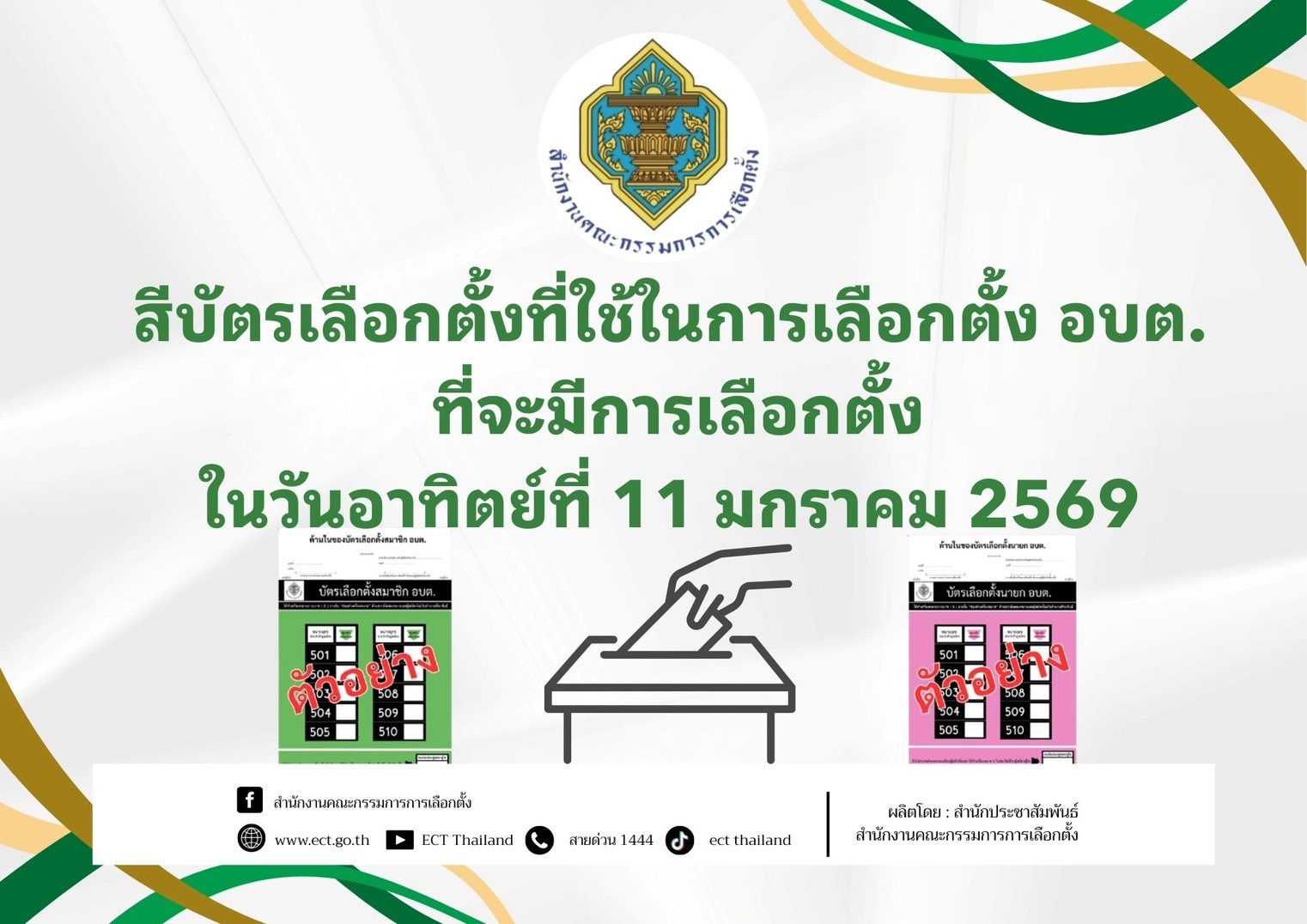 ประชาสัมพันธ์ สีบัตรเลือกตั้งที่ใช้ในการเลือกตั้ง อบต. ที่จะมีการเลือกตั้งในวันอาทิตย์ที่ 11 มกราคม 2569 |